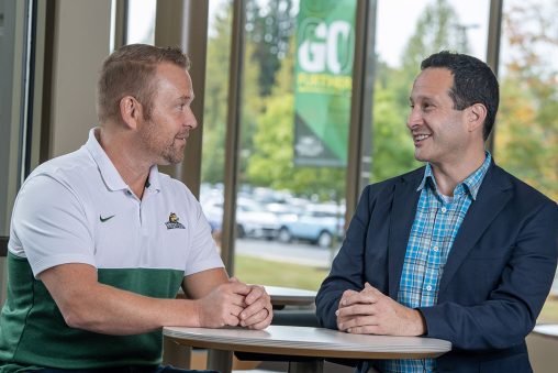 As entrepreneur in residence in the Sandler Center for Innovation and Entrepreneurship, Jason Trimbach, left, will mentor Wright State students and encourage students to think with an entrepreneurial mindset.