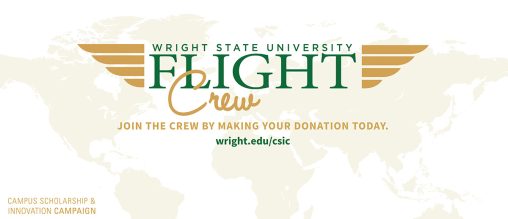 “The Flight Crew is composed of like-minded faculty, staff and retirees who support the mission of Wright State University and its commitment to the success of current and future students,” said Amy Jones, director of annual giving. “By joining the Flight Crew, you are making a meaningful impact in our students’ educational experience while also investing in the areas of campus that mean the most to you.”