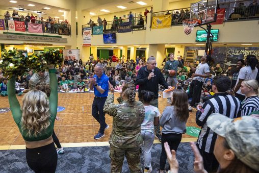 Wright State will host the Big Hoopla STEM Challenge on March 15 at the Wright State University Nutter Center, where K–8 students can explore hands-on STEM activities, compete in a basketball shooting contest and earn scholarships and other prizes. (Photo by Erin Pence)