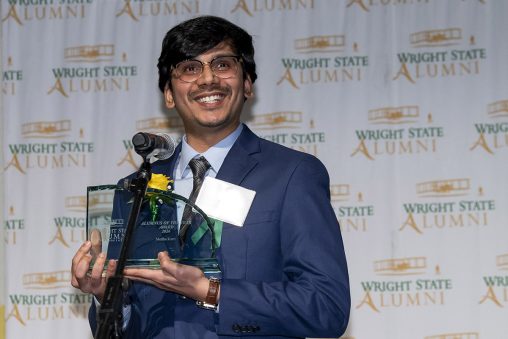 Medha Karri, who earned his master’s degree in computer science from Wright State, was honored with the university’s 2026 Alumnus of the Year Award. (Photo by Erin Pence)