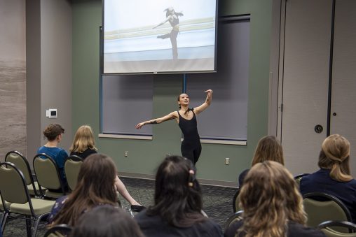 Dance and biomedical engineering major Bri Chan’s presentation, “Story Telling Through Movement,” demonstrated how dance is a form of research.
