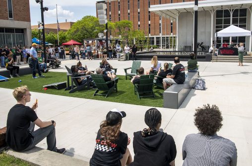 During April Craze, Wright State celebrated the Moat at Wright Plaza, a revitalized outdoor gathering space featuring new water features, seating, lighting, improved accessibility and a performance stage at the heart of campus.