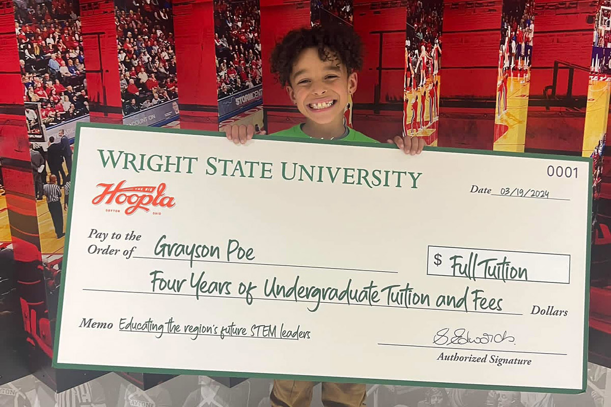 Grayson Poe, a Gerke Elementary student from Franklin, Ohio, has carried a new confidence since winning a Wright State scholarship at the 2024 Big Hoopla STEM Challenge, the same program he attended for the love of STEM. (Photo courtesy of Jade Poe)